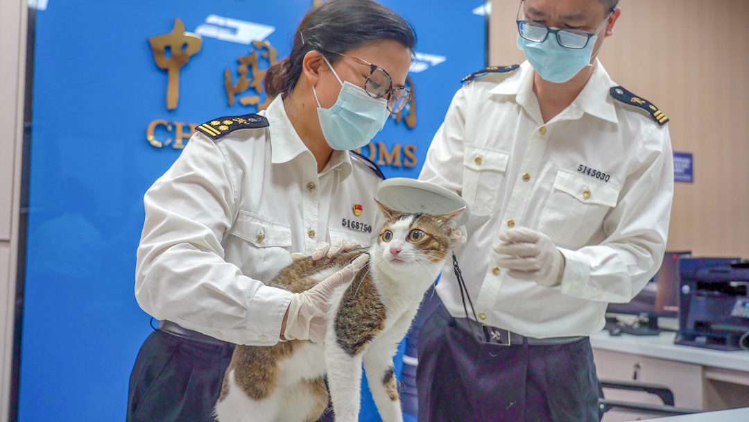 近日,在广州海关所属番禺海关出境宠物查验室,出境旅客正在办理“出境宠物检疫”业务,他们前期已通过“携带出境宠物检疫”功能模块进行申报,待海关工作人员对宠物检疫合格后,宠物主人就能取得宠物出国“通行证”——《动物卫生证书》。这是该功能模块正式上线后番禺海关签发的首批次证书。