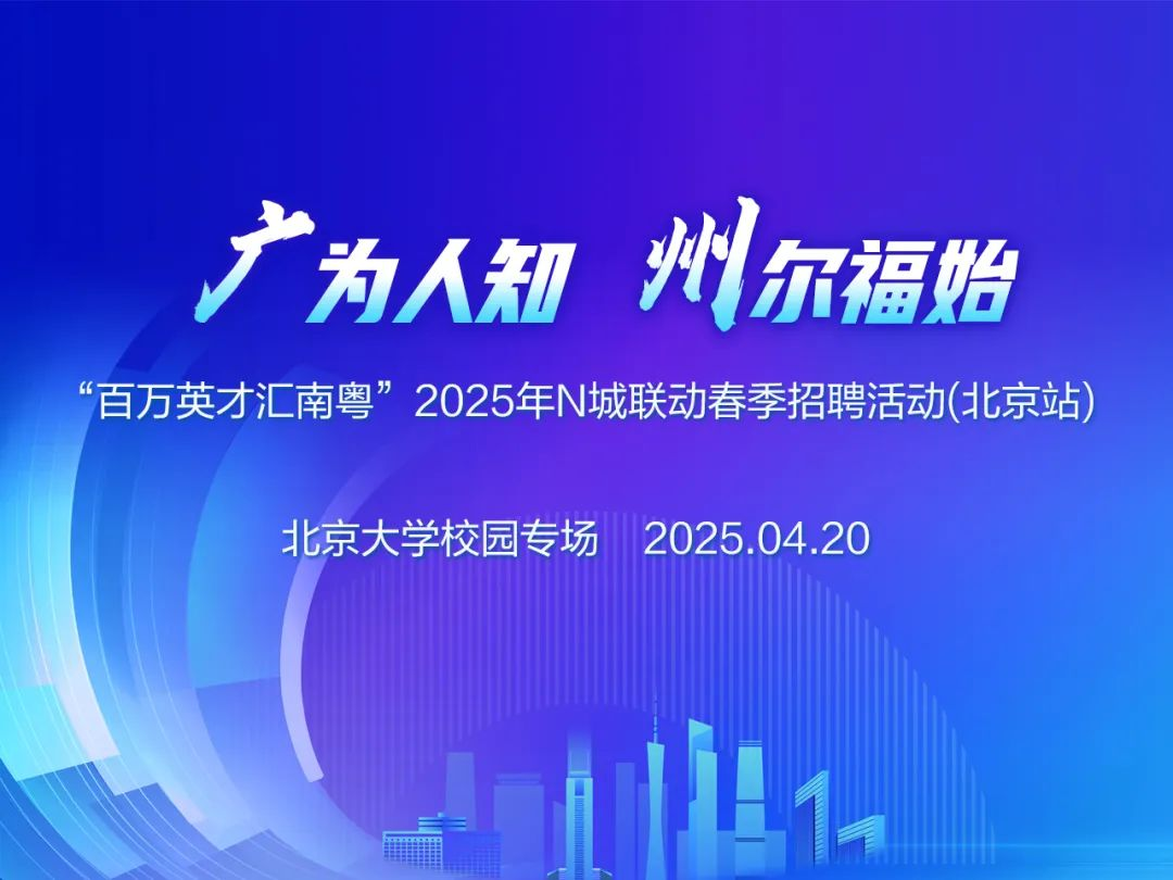 为加快推进粤港澳大湾区高水平人才高地建设,进一步落实全省高质量发展大会精神和“百万英才汇南粤”行动计划,着力招引更多优秀青年人才到广州和广州国有企业工作,广州市国资国企将于4月20日在北京大学举行“百万英才汇南粤”2025年N城联动春季招聘活动(北京站)——北京大学校园专场。