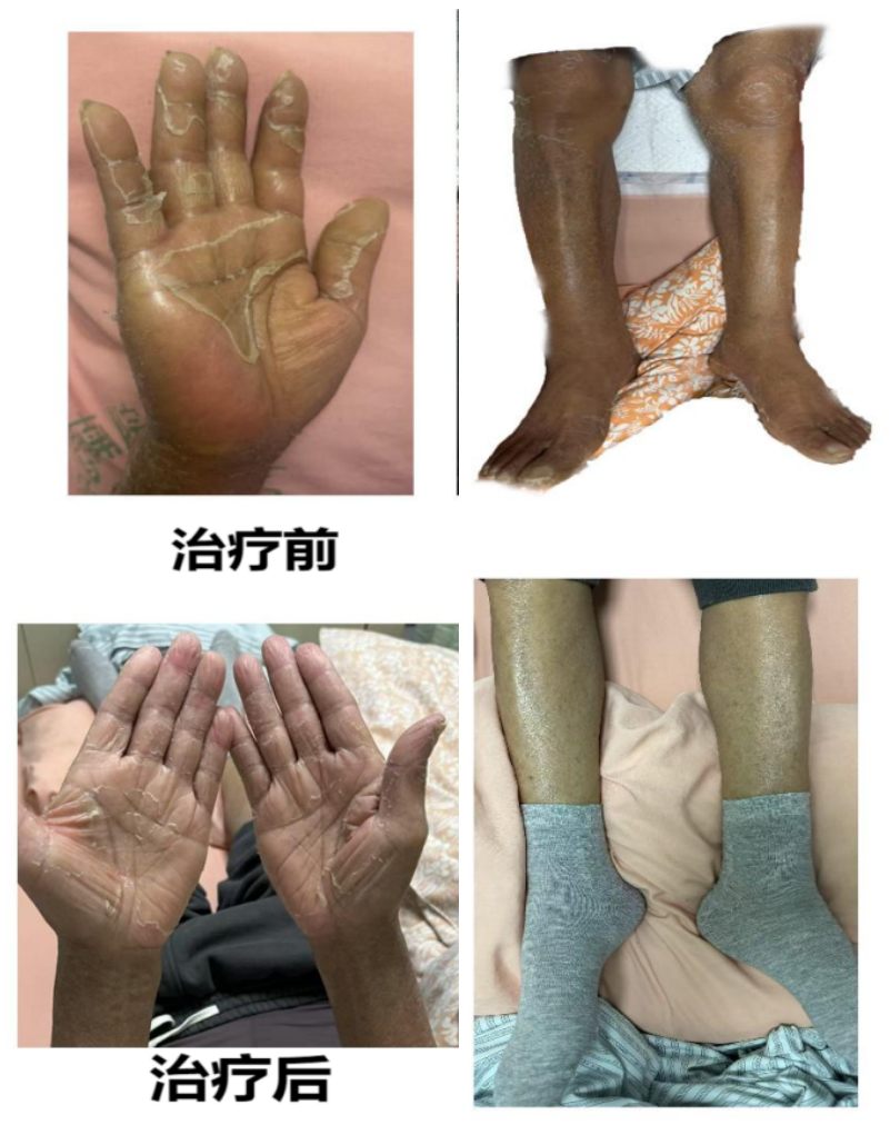 2024年下半年,唐先生因持续黄疸、高热伴皮肤瘙痒,被诊断为“肝门部胆管癌合并复杂胆道感染”。更棘手的是,他在治疗过程中出现严重的药物超敏反应综合征(DIHS),导致全身皮肤大面积剥脱,并伴有重度贫血,病情棘手。“去了好几家大医院,都因为病情复杂,手术风险极高,建议保守治疗。”唐先生的家属回忆道。然而,保守治疗无法控制胆道感染,患者的肝功能持续恶化,皮肤病变也让他痛苦不堪……