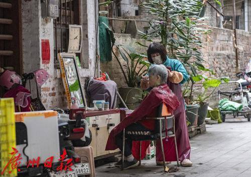 木排头似乎有将时光暂停的魔力,像这样的户外理发铺在老城区也不多见了。