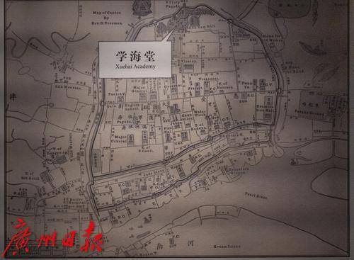清代学海堂位置示意图。学海堂是由乾嘉时期著名汉学家阮元于道光五年(1825年)在越秀山南麓创办的著名书院。