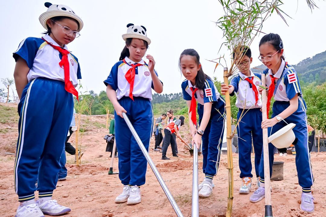 今天上午10时,春风拂面,竹影婆娑,“竹韵共生·守护国宝”广州动物园大熊猫竹子种植基地揭牌仪式在增城林场正式启动。