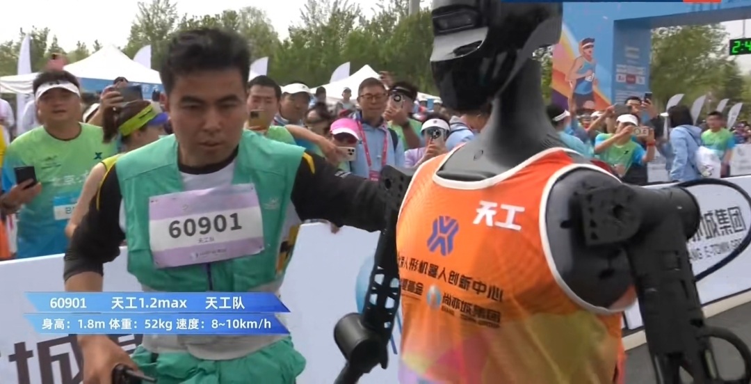 广东企业在这次比赛中也出了不少风头。夺冠的“天工Ultra”就有广东企业优必选的参与——研发“天工Ultra”的北京人形机器人创新中心的发起单位和总经理单位正是优必选。“天工Ultra”身高约1.8米、体重约55公斤,今年不仅将时速从6千米/时提升到最高峰值速度12千米/时,还通过搭载“一脑多能”“一脑多机”的通用具身智能平台“慧思开物”变得更聪明。天工队发言人魏嘉星说:“为在此次马拉松中取得优异成绩,我们攻克了本体的稳定性、轻量化设计、关节长时间运动易发热等硬件难题,还通过优化运动控制算法进一步增强了关节协调运动能力、步态协调能力和复杂地形通过能力等。参赛过程中‘天工Ultra’的配速为7-8千米/时。”