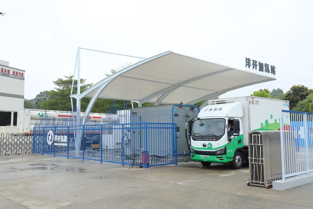 4月18日,一辆氢能冷链车在开平市翠山湖加氢站完成加氢后启行,江门首座加氢站——沣开加氢站在开平市翠山湖产业园正式投用。这标志着开平乃至江门的氢能产业发展迈入新阶段。沣开加氢站为撬装式设计,加注能力为每天1吨,可满足40辆氢能重卡加注需求。加氢站启用后,其运营公司将分批次配套投入超50辆氢能冷链车用于粤西通往珠三角区域配送。