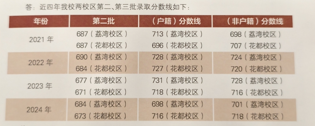 4、 近四年广雅中学两校区高中的录取分数线是多少?预计2025年的招生分数线是多少?