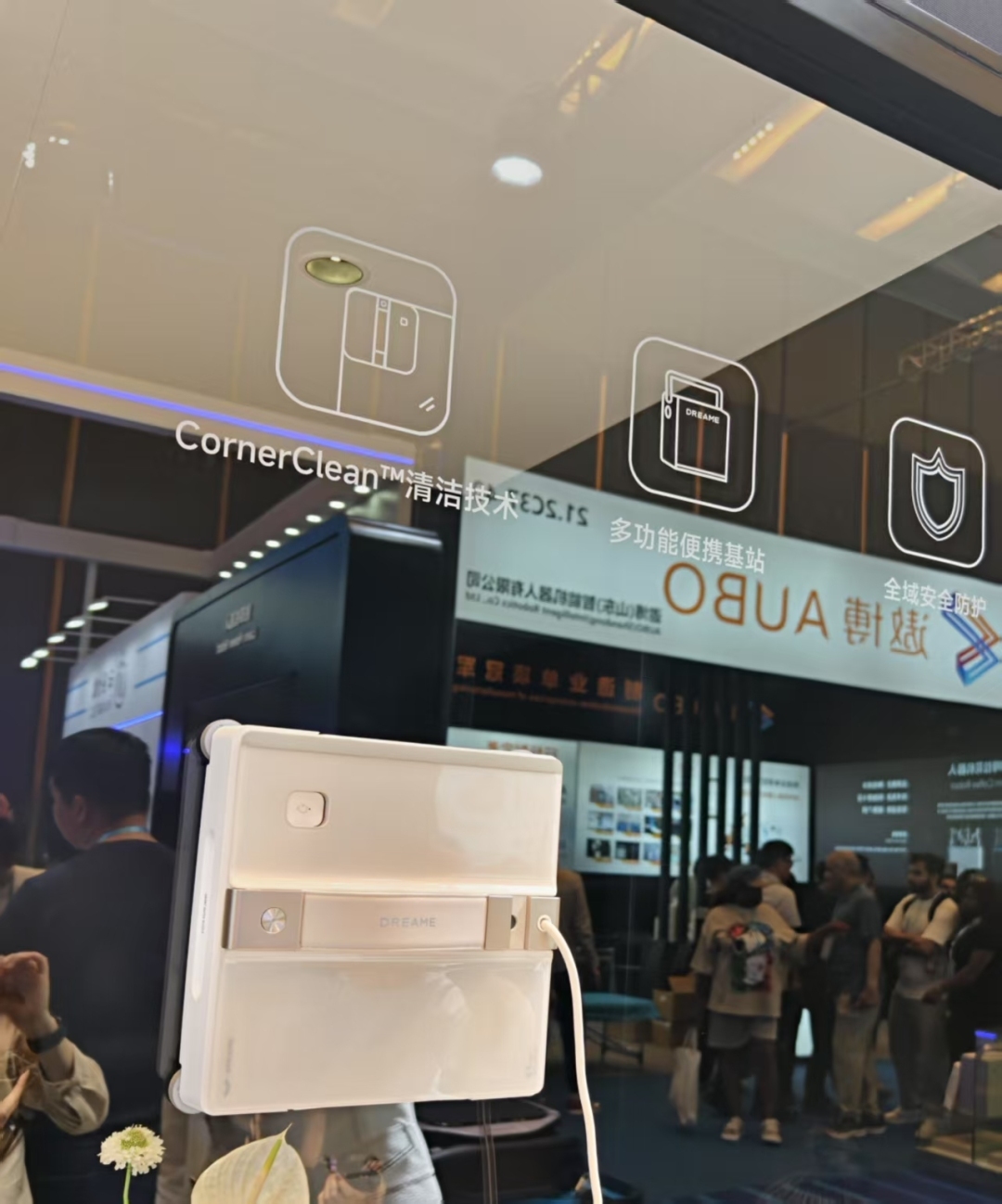 在客户会谈区,擦窗机器人C1系列则开启了无间断的高效工作,CornerClean清洁技术、AI智能路径规划等创新技术,让这个擦窗机器人似乎拥有了“智慧大脑”,可以规划最佳路径,快速实现窗明几净。