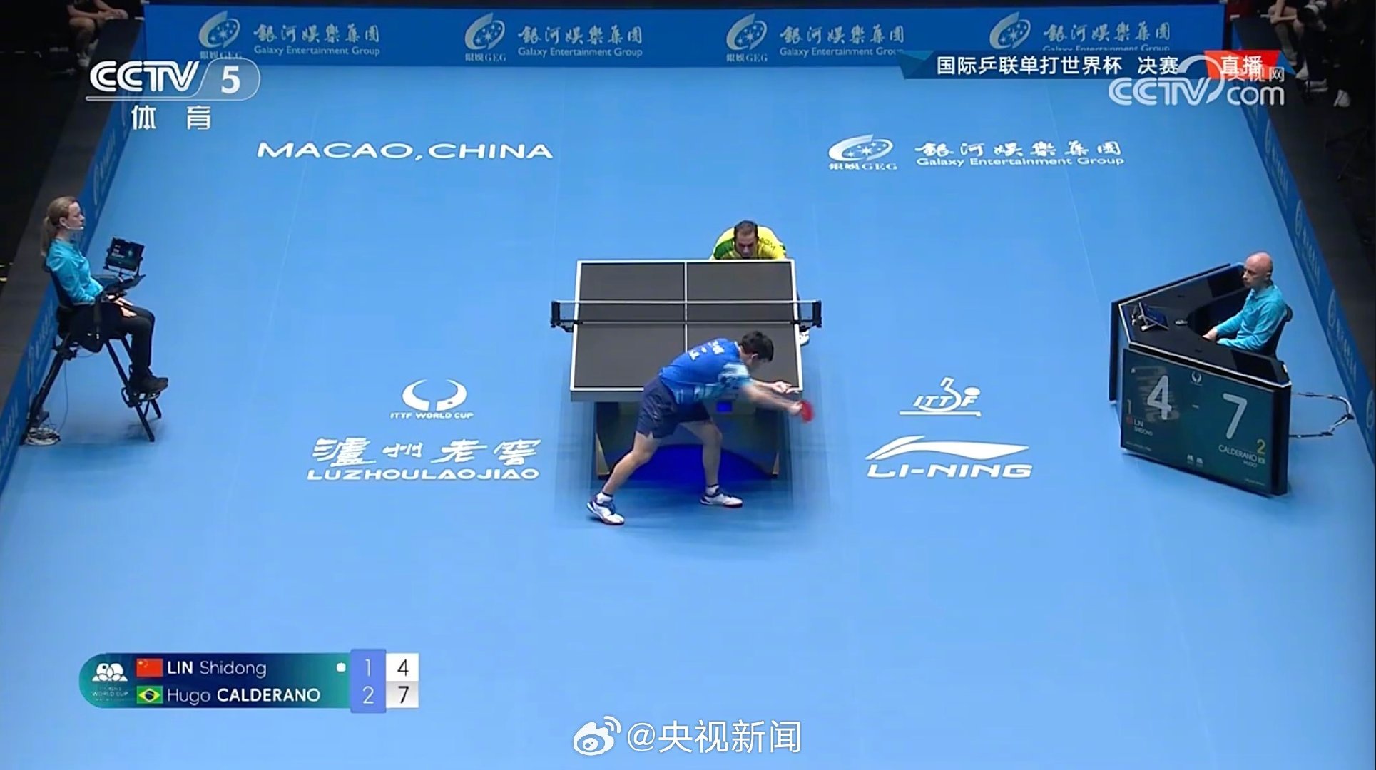2025澳门乒乓球世界杯男单决赛中,中国选手林诗栋不敌巴西选手雨果·卡尔德拉诺,获得亚军。