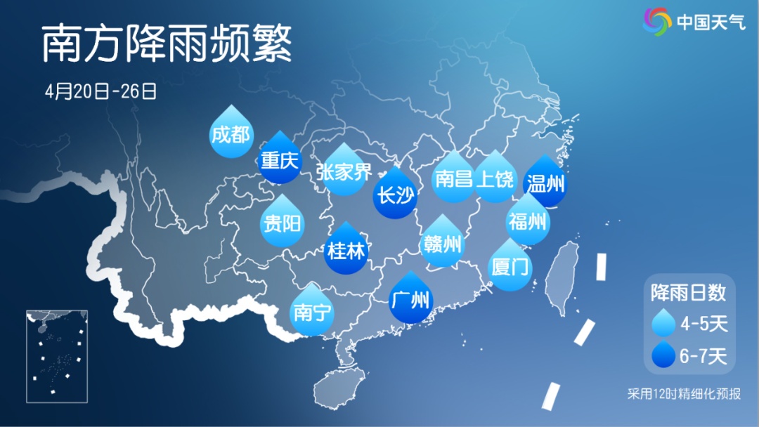 好消息是,雨水要多起来了!未来10天,江南、华南等地降雨明显增多,将有三轮主要过程:20日至22日、23日至25日和26日至28日,江南、华南以及西南地区东部等地将有中到大雨,局地暴雨或大暴雨,并伴有短时强降水、雷暴大风等强对流天气。