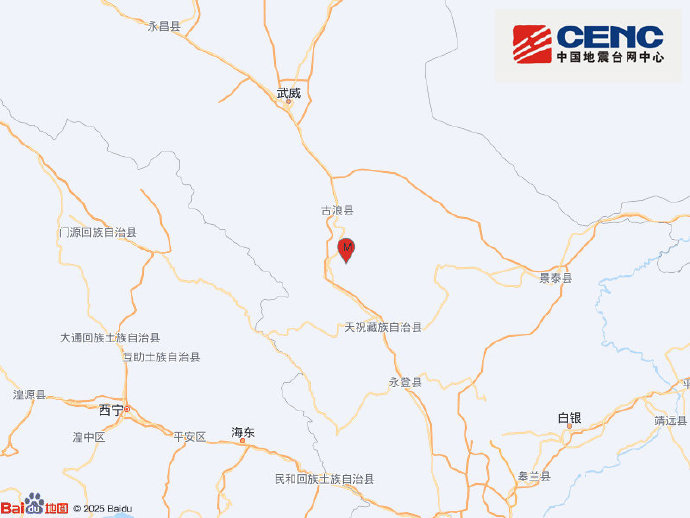 中国地震台网正式测定:2025年4月20日04时27分在甘肃武威市古浪县(北纬37.27°,东经102.95°)发生3.0级地震,震源深度10千米。古浪县城及黑松驿、黄羊川、十八里堡、古丰、定宁等乡镇有轻微震感。