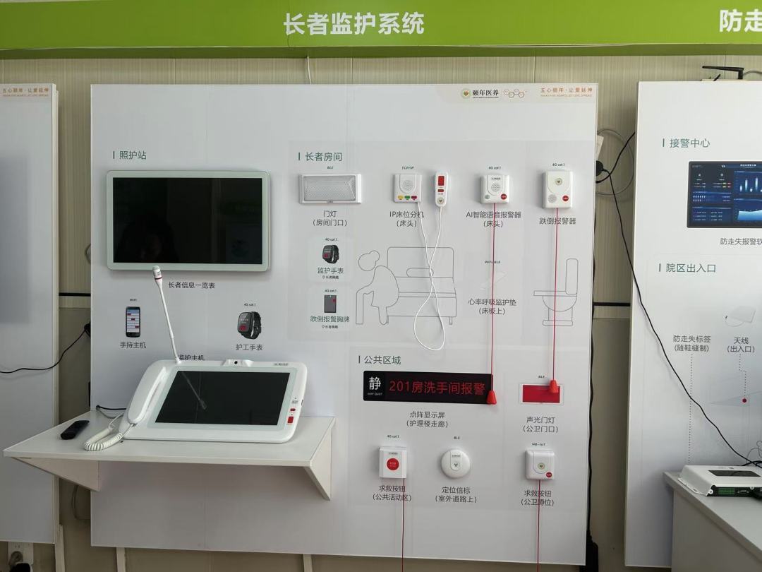 像他们养老院自研的一款长者监护系统已经运用在其中一个专区。这套系统集成了AI智能语音报警器、跌倒报警器、监护手表等多种设备。起初老人们对这些新事物有些不理解,但通过耐心沟通和实际演示,系统逐渐得到了大家的认可。