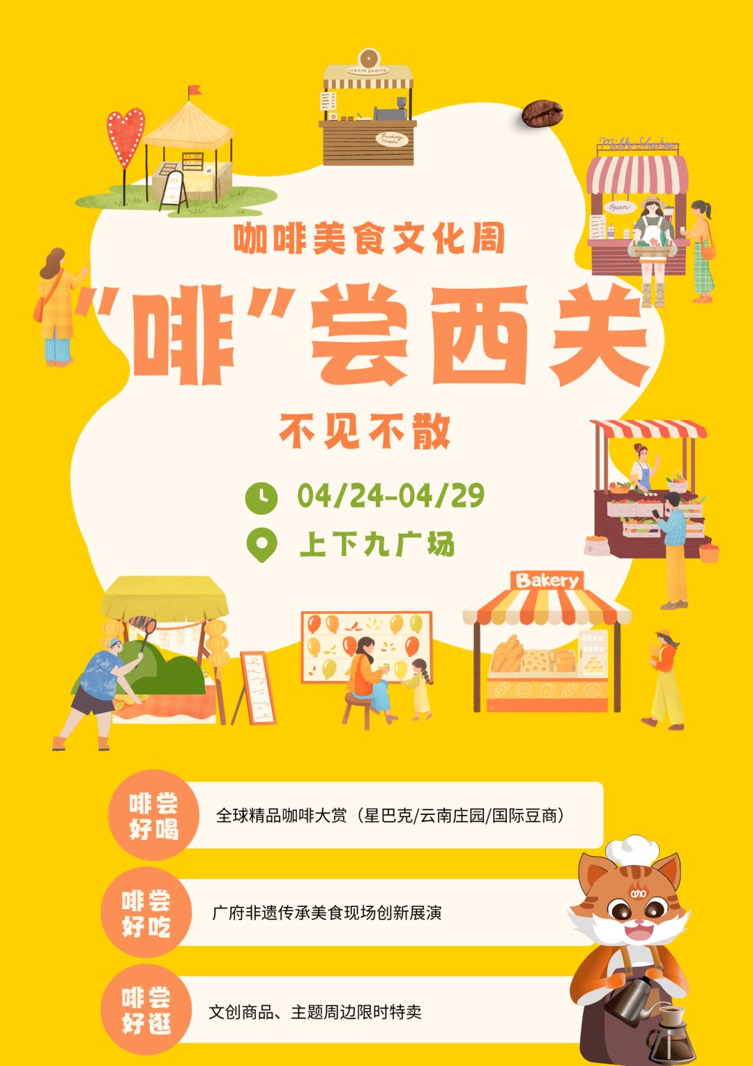 各位“咖友”“食客”们,4月24日—29日,来上下九广场,一起体验咖啡文化、品尝精品特调!