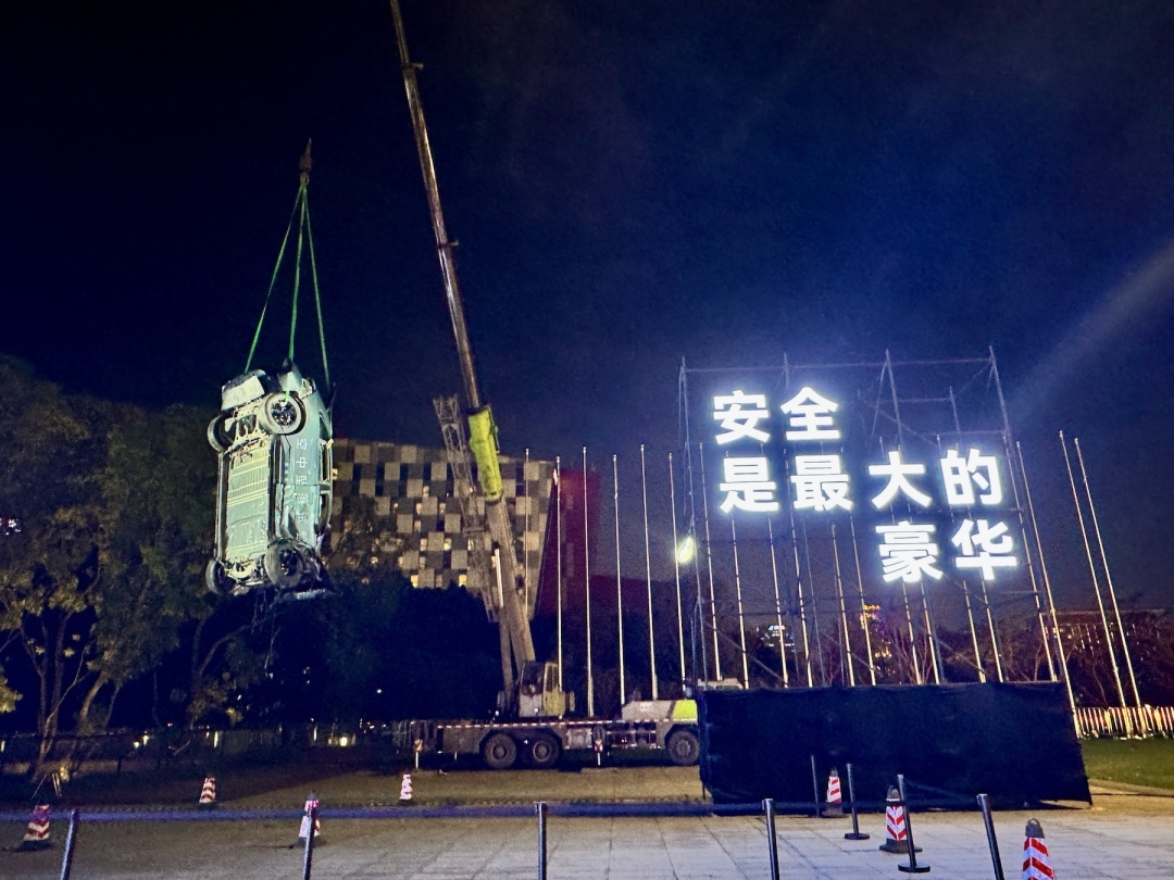 发布会现场,一台车头有明显撞损痕迹的星纪元ET被悬在空中,展示其安全性。据悉,在行业首次31.9米的高空“自由落体”实验中,星纪元ET坠地碰撞速度超过90km/h,星纪元ET试验后乘员舱结构无明显变形,车门均能打开、气囊正常弹出,电池未漏液、无冒烟、不起火。