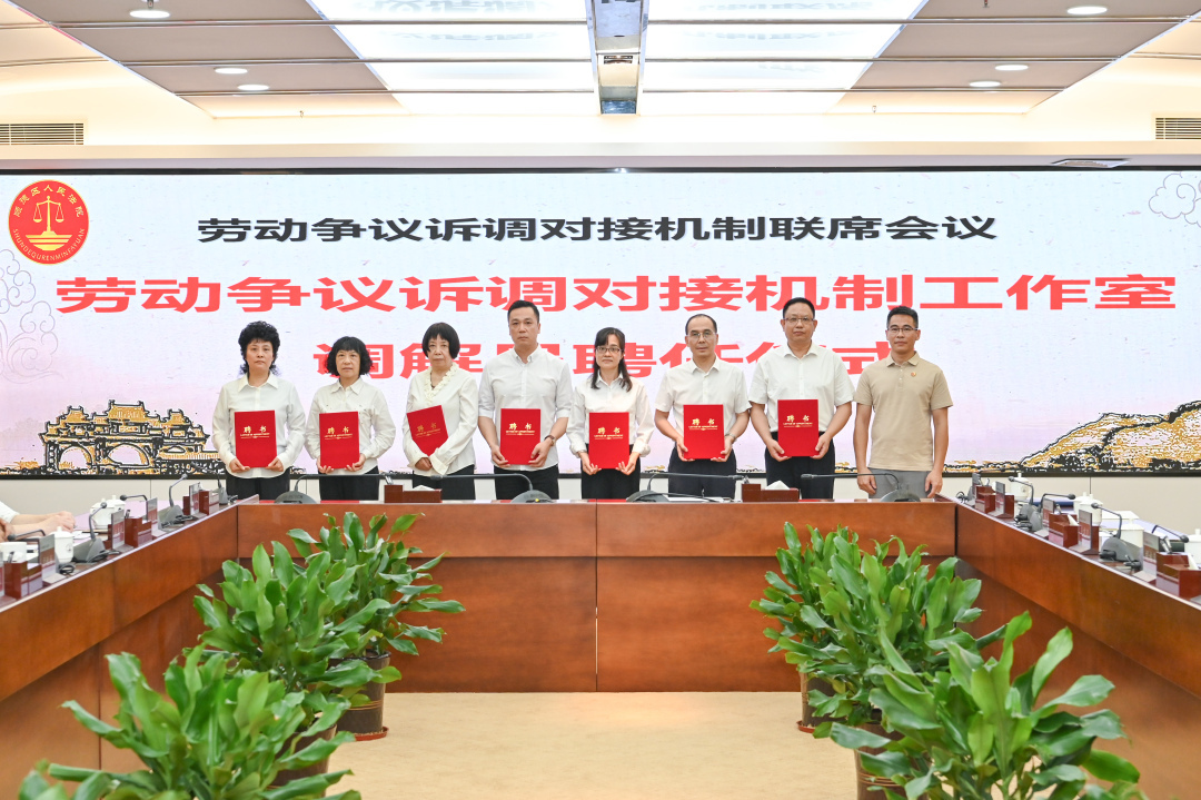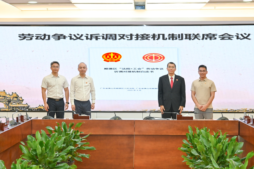 在“五一”国际劳动节即将到来之际,4月21日,佛山市顺德区人民法院、佛山市顺德区总工会、佛山市顺德区民政和人力资源社会保障局联合召开劳动争议诉调对接机制联席会议。