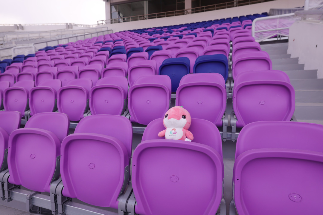 今日探访场馆的第一站,就是2001年九运会的主场馆广东省奥体中心。在此前十五运会倒计时300天前夕,广州日报全媒体记者就曾赴场地探访。当时体育馆内未加装座椅,仍处于施工阶段。而昨日上午,记者在现场看到,十余名工人正在中心内部进行收尾工作,场馆已经基本展示出“完美状态”。