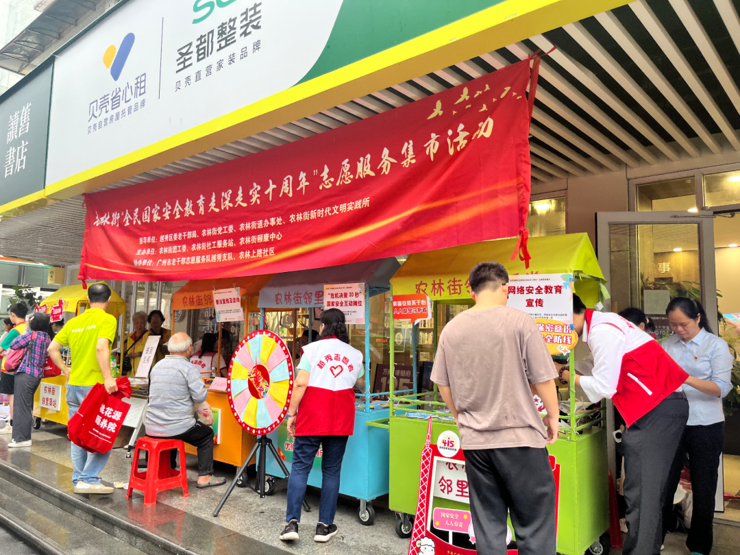 这场以“全民国家安全教育走深走实十周年”为主题的志愿服务集市,由越秀区委老干部局、农林街党工委、街道办事处、新时代文明实践所指导,农林街团工委与社工服务站主办,农林街退役军人服务站、司法所、派出所、颐康中心、农林上路社区以及省委网信办、省国研中心、市老干部志愿服务队越秀支队、广东工业大学材料与能源学院、广东链家、中网信(广州)数据有限公司、中家医家庭医生口腔医院等单位党员、志愿者参与献力,构建起“政社联动+多元参与”的普惠服务网络,吸引数百名居民沉浸式参与。