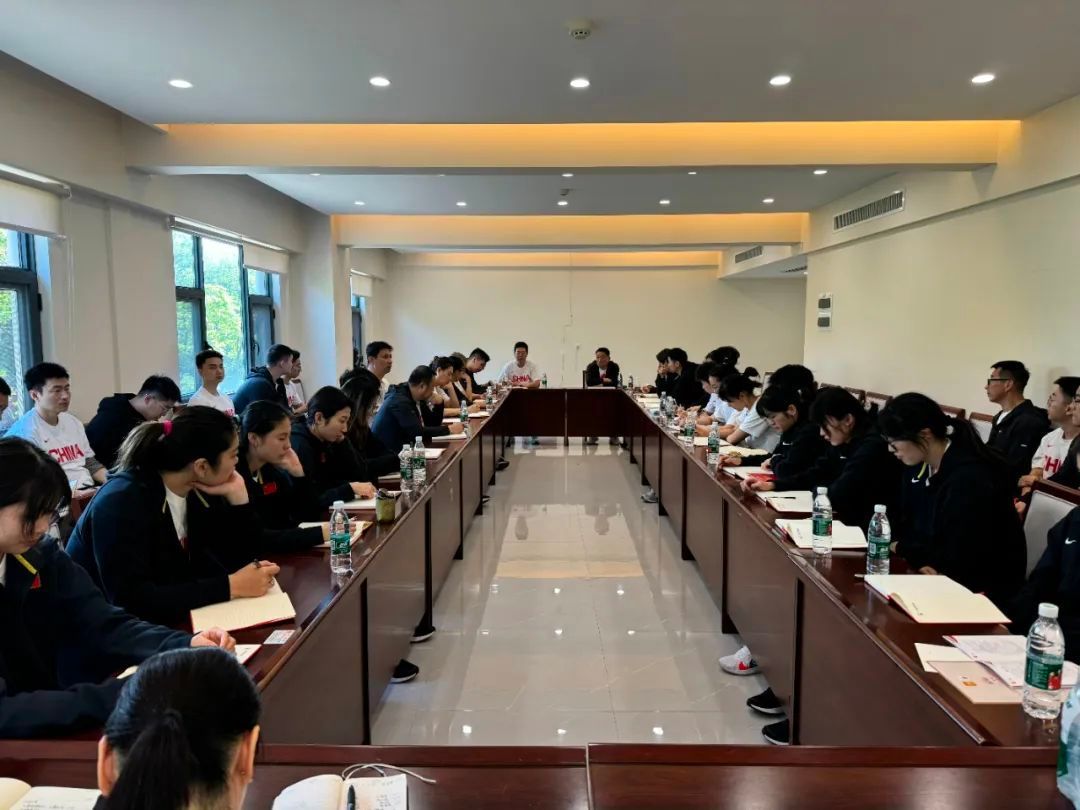 国家女篮主教练宫鲁鸣对队伍前期工作给予充分肯定,特别表扬总决赛队员按时报到、行李组转训保障及队员自律表现。宫鲁鸣强调,本次集训将统筹技战术训练与综合素质提升,同步开展思想教育、篮球基础理论及历史文化学习。他向队员解析了基础配合战术体系,要求大家在日常学习积累中践行“比、学、赶、帮、超”的团队精神,营造良性竞争氛围。同时,他要求全体队员通过书面总结的形式系统梳理巴黎奥运会及WCBA总决赛参赛心得。