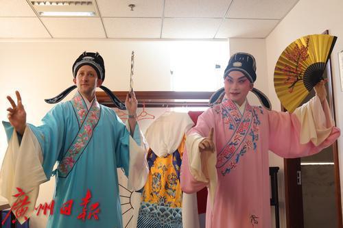 埃文体验粤剧文化。接受记者采访时,他表示广州之旅让他印象深刻。