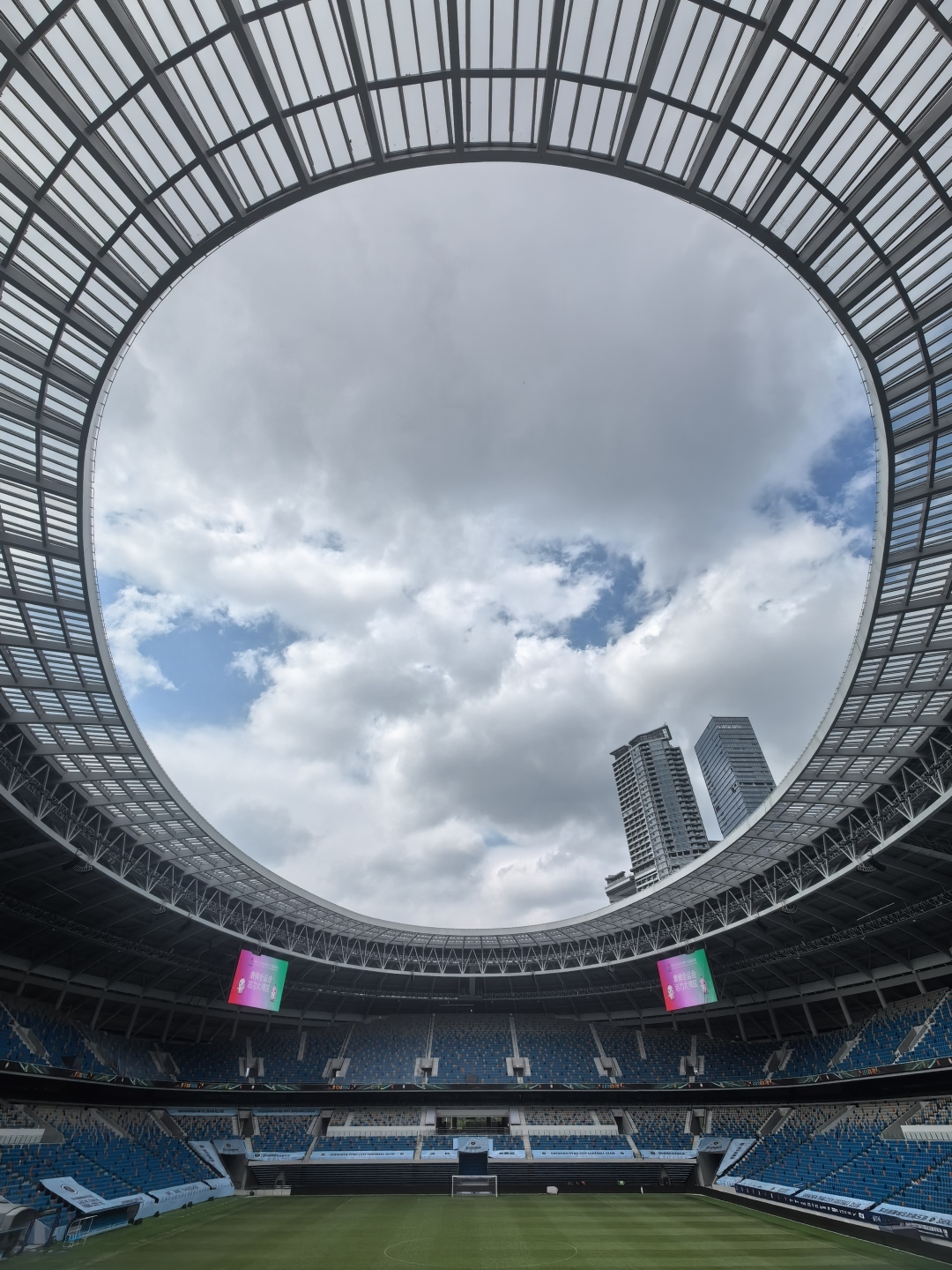值得一提的是,体育中心还是5G智慧场馆。观众在其他场馆看比赛,往往会遇到发不了朋友圈的尴尬,而智慧场馆则完全规避了这个问题,随时随地都可以让朋友看到你的观赛动态。