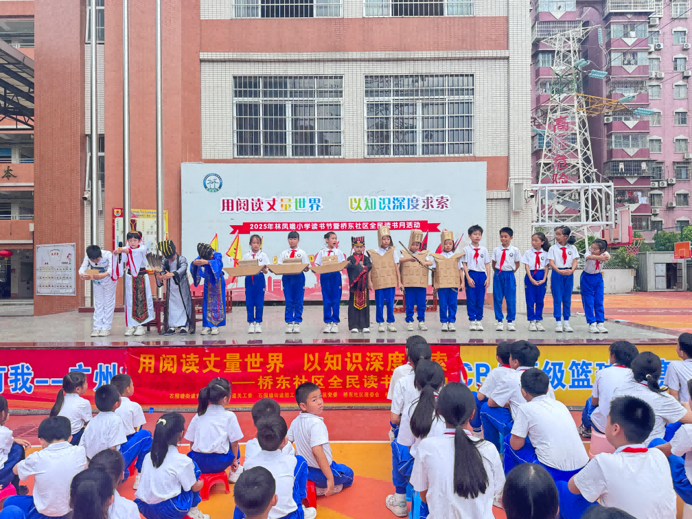 活动开始,林凤娥小学师生以精彩的展演拉开序幕。学生们在舞台上以情景剧、朗诵等形式演绎经典文学作品,展现阅读带来的创造力与感染力。高年级学生的情景剧《草船借箭》,让观众在共情中感受传统文化的当代价值;低年级学生用朗诵诠释经典诗词的隽永意境。现场还穿插“有奖知识问答”环节,题目涵盖文学常识、历史典故等内容,学生们踊跃参与,争相竞答,将活动推向高潮。