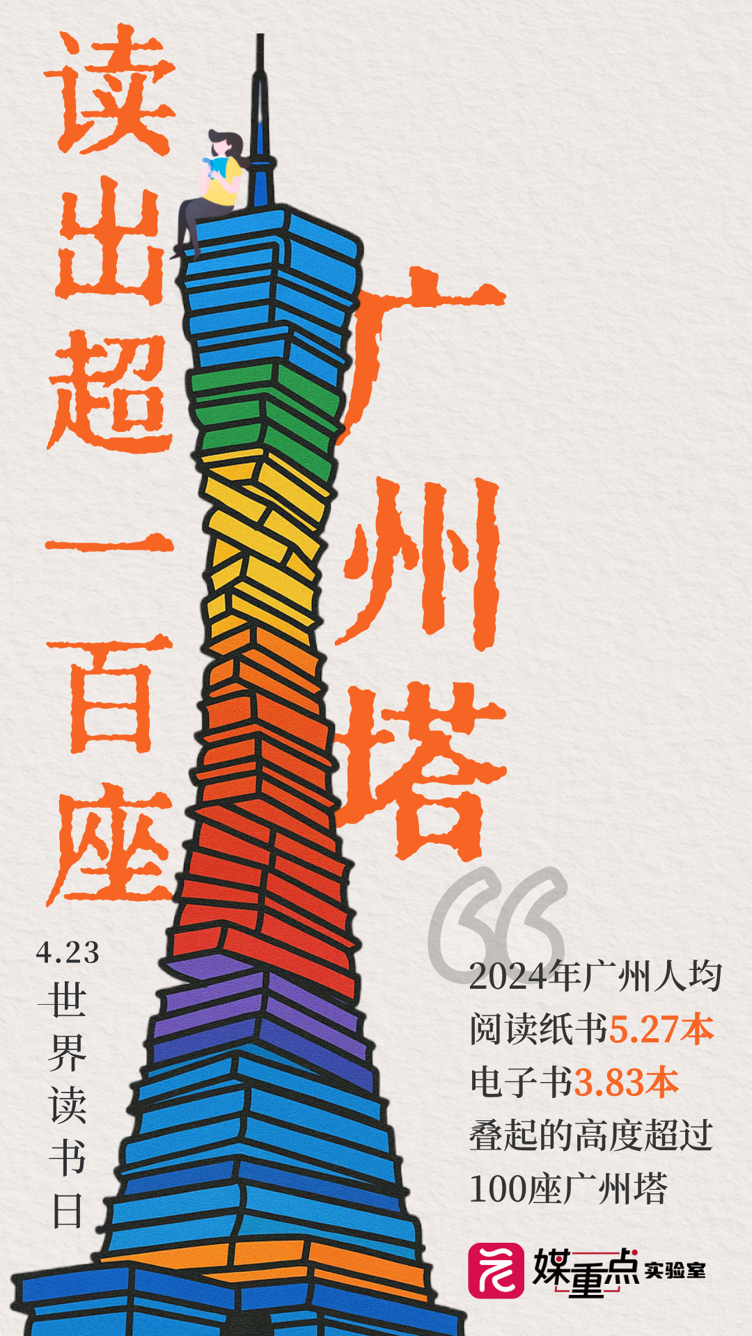 人间四月天,正是读书好时节,2024年广州市居民阅读调查报告如期而至。数据显示,多项重要指标较2023年均有所增长。支撑数据领跑的是广州全民阅读推广工作的不断拓展、持久深化、坚持创新!