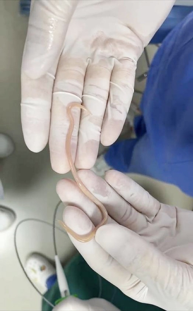 近日,深圳一名45岁女子近期总出现不明原因腹痛,到广州中医药大学深圳医院就医,医师竟然在她肠道中抓出了一条“虫子”,原来是一条活体蛔虫。医生指出,该患者患病与不洁饮食习惯密切相关,提醒各位市民注意生吃食物的健康风险。