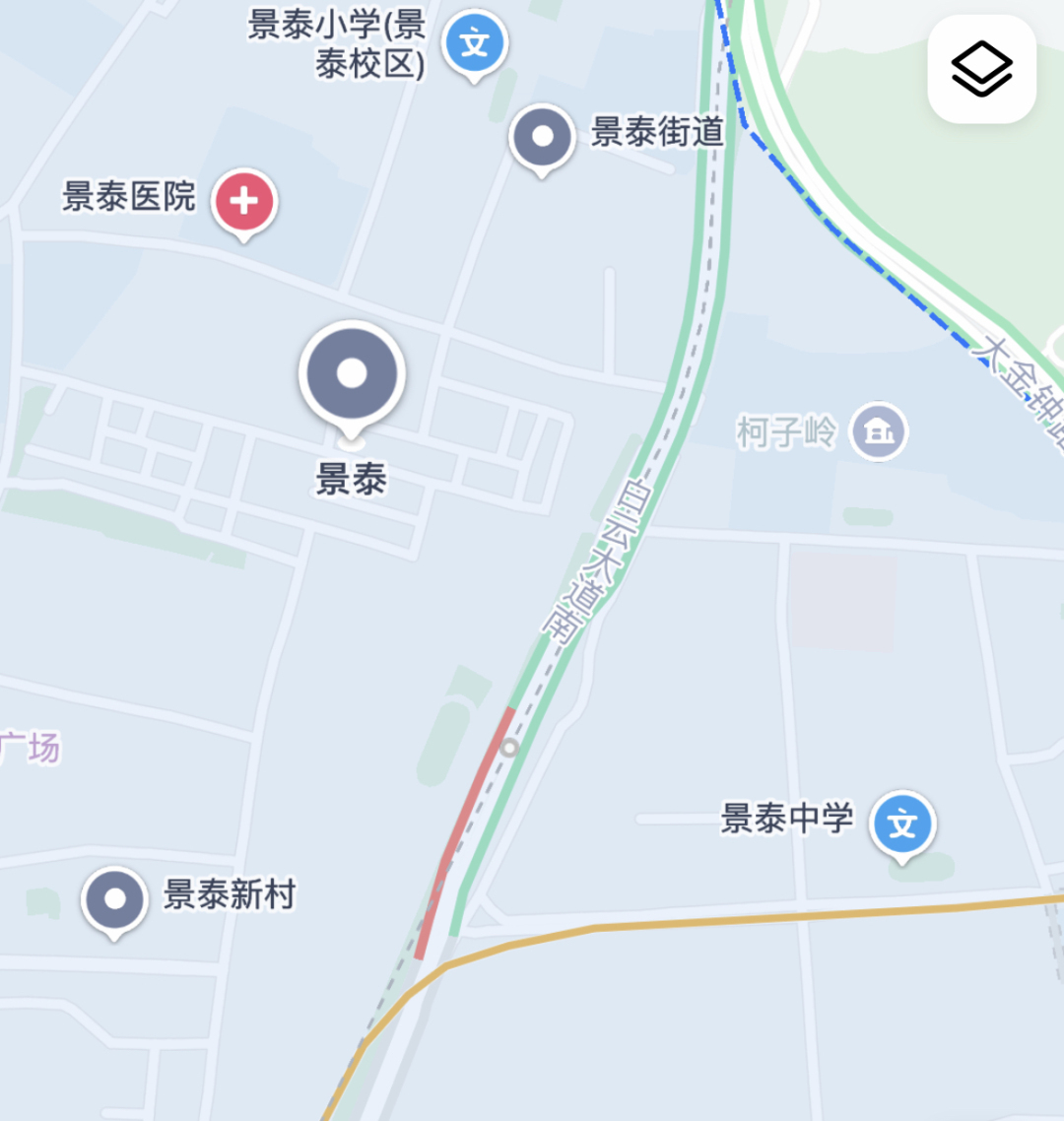 (白云大道南与金信路交界的地铁站,初定站名景泰,与一众景泰开头的地名距离较远。)
