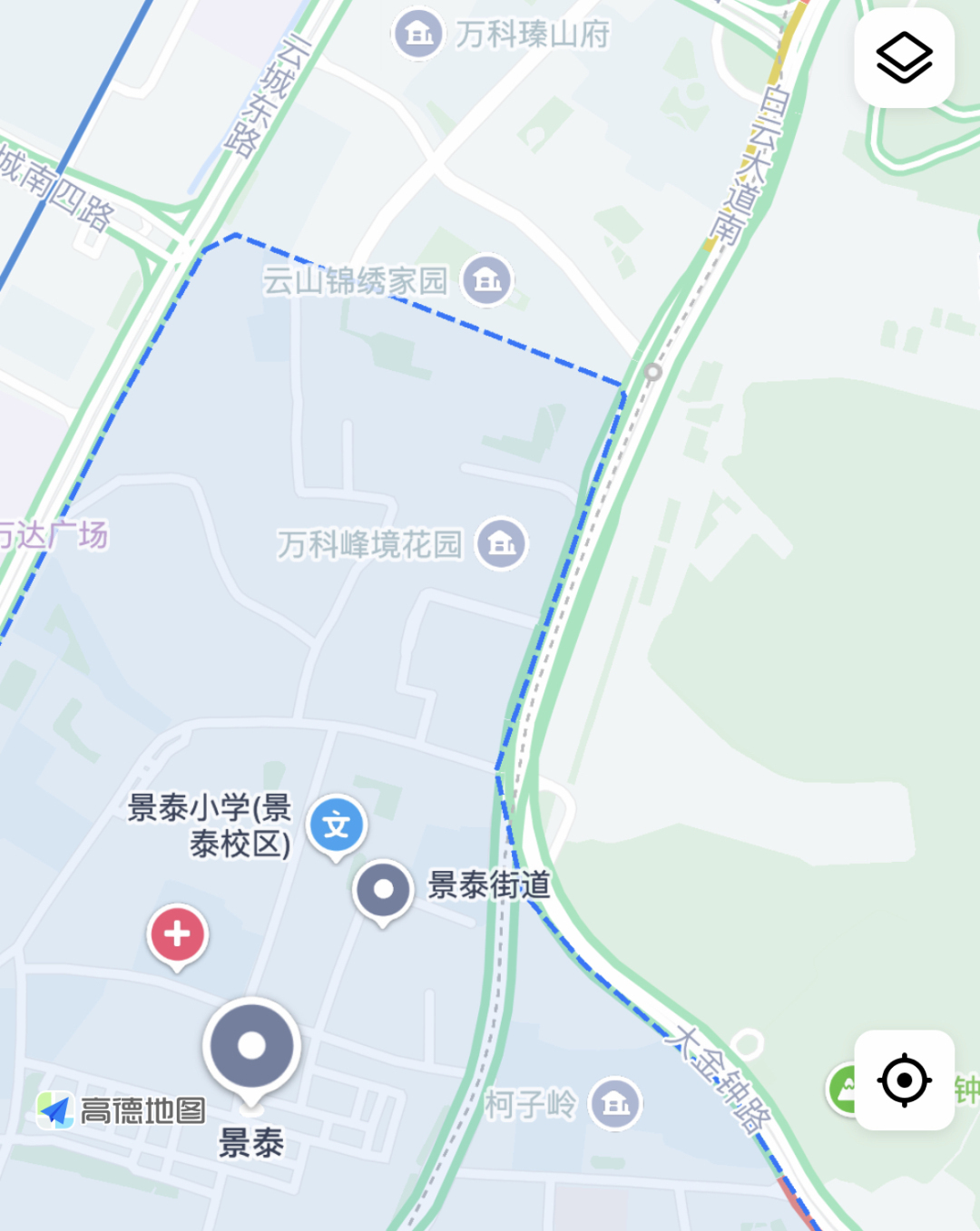 (图中圆点是初定站名为柯子岭的车站,既临近柯子岭,也被多个景泰开头的地名包围。)