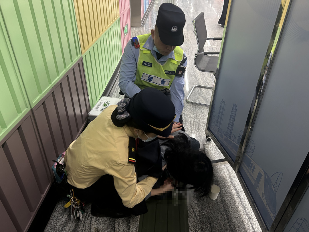 垫着,以防地面冰凉。“不用怕,已经报了120,医护人员马上来了。”黄金仙紧紧握着女乘客的手,轻声细语地安抚着。8:08左右,120急救人员赶到车站,对女乘客进行初步的检查,随后车站工作人员协助将女乘客护送出站前往医院作进一步治疗。