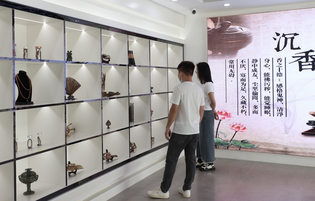 不仅建筑外观特色明显,内部更含沉香文化韵味。项目还与电白沉香集团牵手合作,在电白服务区搭建非遗展厅,集中展示线香、香薰、根雕等精美工艺品,并计划设置展销平台,推动更多文旅产品上路“圈粉”,擦亮“世界香都·浪漫电白”的城市名片。