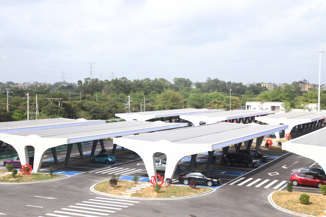 在电白服务区小车停车棚超一万平方米的空间里,一排排整齐铺展的光伏板,正源源不断地向20台充电桩注入绿色能量,往来电车享受到了一波“阳光补给”。
