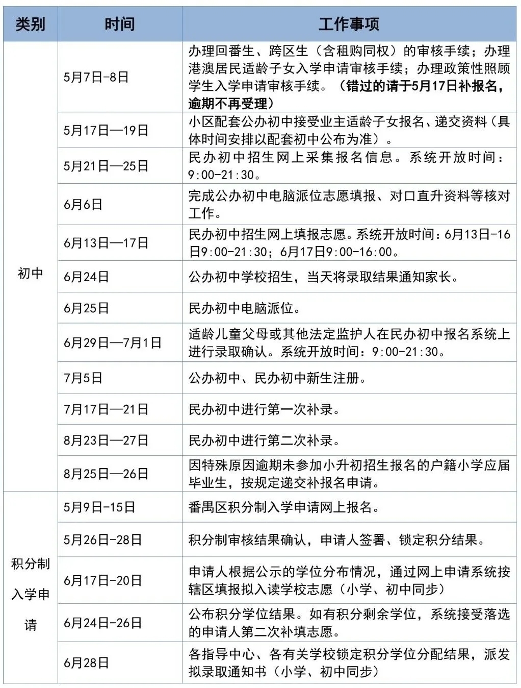 (一)5月9日-5月15日,番禺区积分制入学申请网上报名。