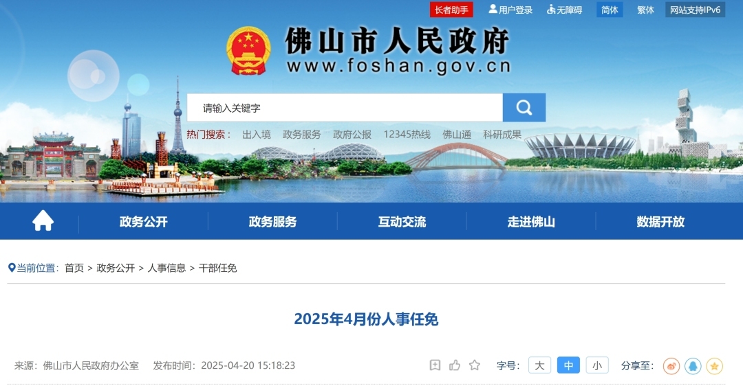 高华东同志的佛山市人才发展集团有限公司董事长职务变更为佛山市人才和数据科技集团有限公司董事长