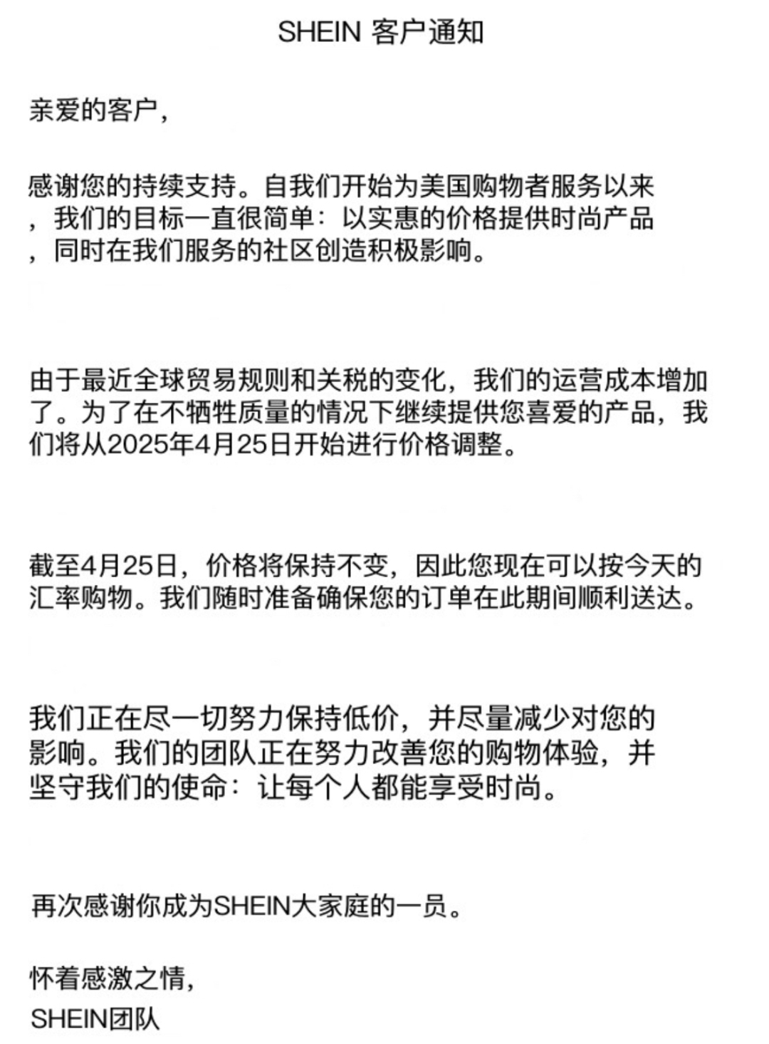 (希音客户通知内容的中文翻译版)