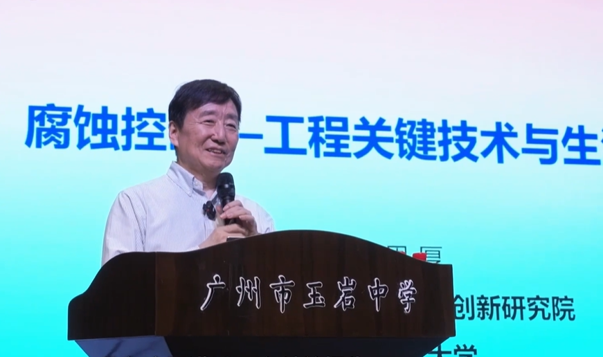 “科普报告进校园”活动采用线上线下结合的形式开展。(联合国)世界腐蚀组织(WCO)主席、中国工程院院士韩恩厚以《腐蚀控制-工程关键技术与生活必备》的报告主题为活动拉开序幕。韩恩厚院士指出,中国每年为腐蚀付出的代价相当于GDP的3%-5%,超过所有自然灾害损失之和的10倍;腐蚀直接影响制造业高质量发展;腐蚀产物不仅污染环境,还会威胁人类健康,比如厨房里锈迹斑斑的铁锅、水龙头,以及道路融雪剂腐蚀的道路、桥梁等。然而,巧妙利用腐蚀也可以为民造福,比如热水器中的镁棒、可降解骨内固定器件、可降解镁合金心血管支架等。