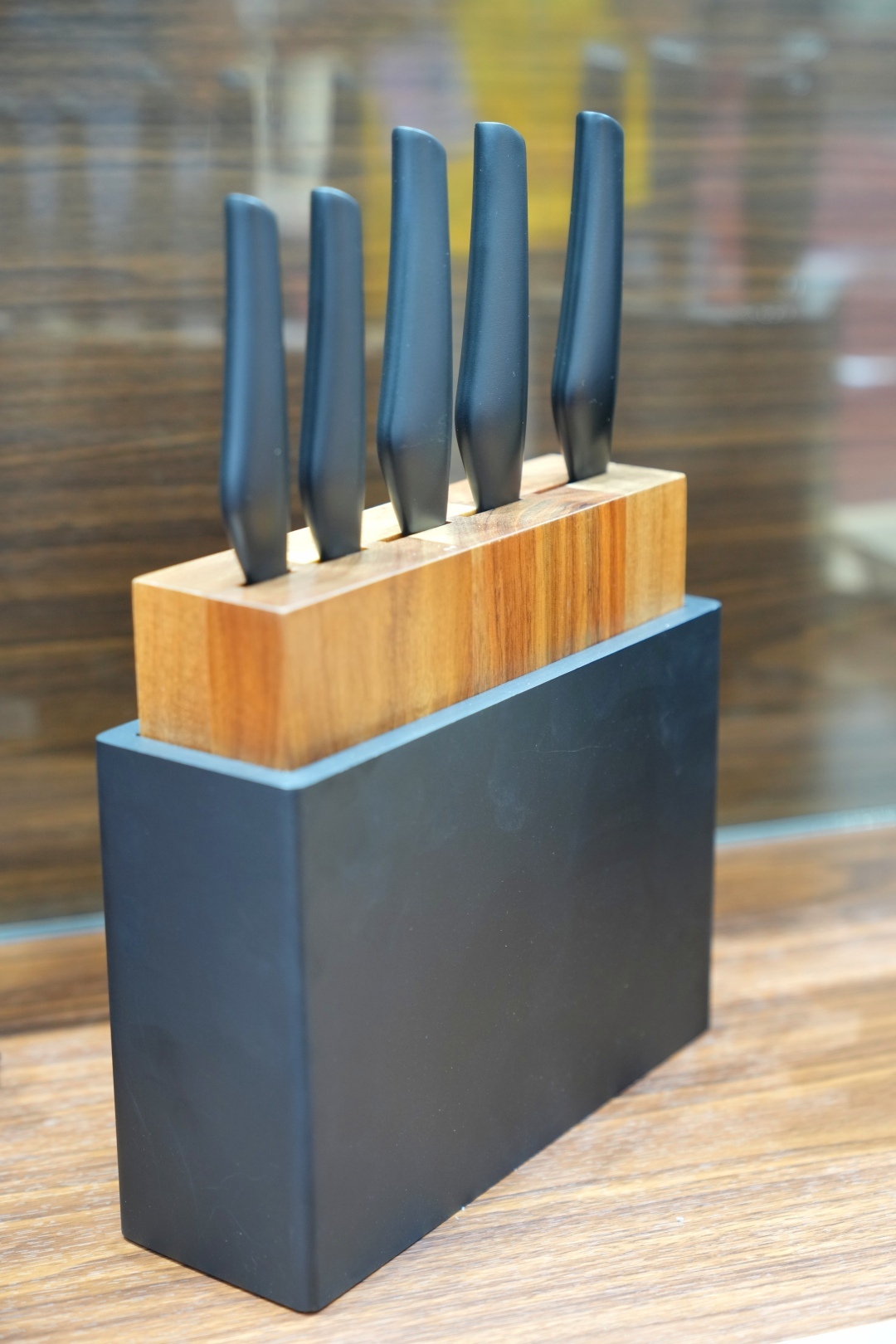 “现在的年轻人会把烹饪当成一种艺术创作,对刀具的要求和老一辈厨师很不一样。”陈自力站在摆满刀具的展位前,以其中一把刀具为例子介绍道,刀刃设计部分用的是复合钢,和传统的一体钢材刀具不一样,刀锋处做得更锋利,切东西更顺滑,刀背处则做了“加宽”处理,在整体保持轻盈的前提下,成本控制适当,还能让年轻厨师在使用时更顺畅。“因为年轻厨师在做菜的时候,各种新奇手法都有,切、拍都不在话下,加厚手柄能让他们用起来体验更好。”在陈自力看来,年轻人就需要希望有这样的产品给到他们使用,这类年轻用户的思想就代表现在这种厨房烹饪市场的现在以及未来。