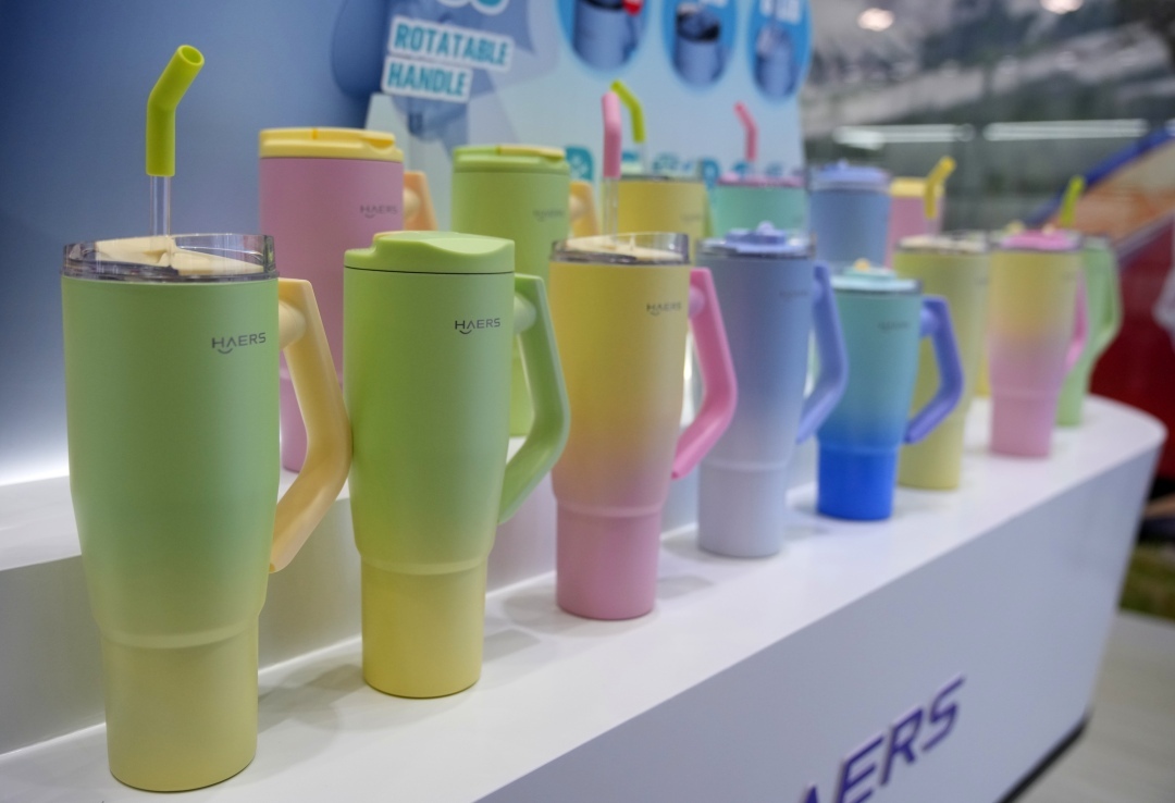 同样的独特创新,也出现在浙江哈尔斯真空器皿股份有限公司的展区。据了解,大容量咖啡杯、保温杯是其重点产品,而研发、设计、生产与销售均是公司一手包办。目前,其自动化生产线以及现代化工厂和设施的日生产能力可达到150000件。