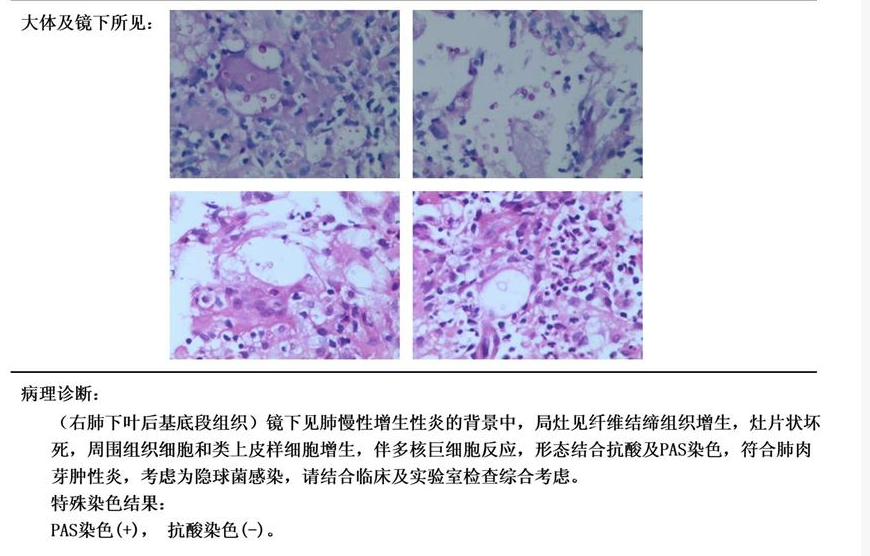 肺活检组织病理:肺肉芽肿性改变,考虑隐球菌感染