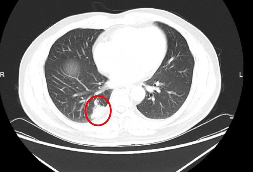 胸部CT:右下肺片结状影,考虑炎症和肿瘤性病变鉴别