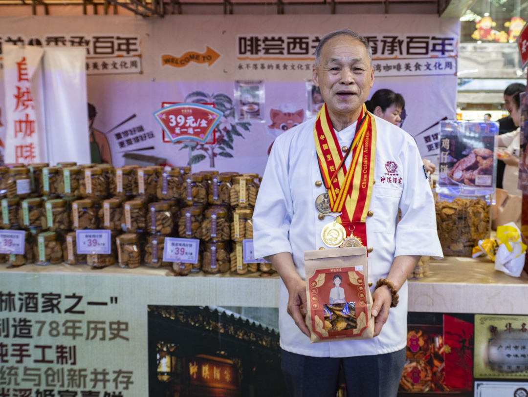 由泮溪酒家非遗糕点大师王金镜研发的咖啡鸡仔饼受到不少市民游客的欢迎。“我在传统鸡仔饼加入一定量的现磨浓缩咖啡液,待咖啡与腐乳、原料混合后再造型烘焙。制作重点在于对原料及火候的把控,将传统鸡仔饼中南乳更换成了腐乳,而原定量的腐乳减少了份量,避免乳香味浓而对成品造成影响,同时也使得咖啡鸡仔饼更酥脆,且有别具中西结合的风味。”王金镜认为,这体现粤点中西融合、洋为中用的特色,以此实现了更丰富的口味,同时,“食在广州,味在西关”,新材料的加入也让荔湾的美食文化更加丰富。
