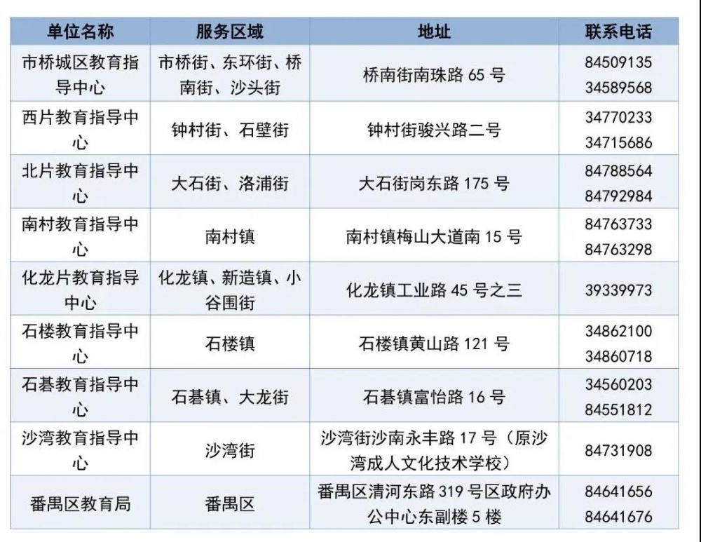 番禺区教育局温馨提醒:由于特殊原因逾期未参加公办小学、公办初中招生报名的户籍适龄儿童少年,于8月25日-8月26日到户籍地教育指导中心递交补报名申请(具体时间以教育指导中心通知为准)。此外,各义务教育阶段民办学校原则上面向本区生源进行招生,无寄宿条件的民办学校不得跨区招生。本区生源的界定依据为:穗籍学生,以其户籍,或其小学毕业学籍界定所属地区;非穗籍学生,以其本人或父母(或其他法定监护人)其中一方的《广东省居住证》(或具同等功能和效力的其他有效证件)地址,或其小学毕业学籍界定所属地区。适龄儿童少年家长可通过“穗好办”APP查询名下不动产登记情况,查询结果教育部门予以确认。