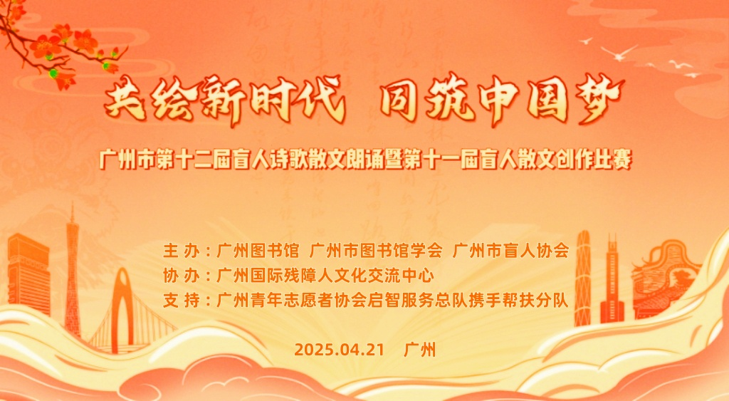 本次广州市盲人诗歌朗诵比赛由广州图书馆、广州市图书馆学会、广州市盲人协会联合举办,吸引了众多盲人选手踊跃参与。大赛以 “绘新时代 同筑中国梦”为主题,旨在丰富盲人的精神文化生活,鼓励他们勇敢地表达自我,同时也让社会大众更加了解盲人的内心世界,促进残健共融。此次比赛吸引众多市民群体关注,在线观看观众人数超2.5万。
