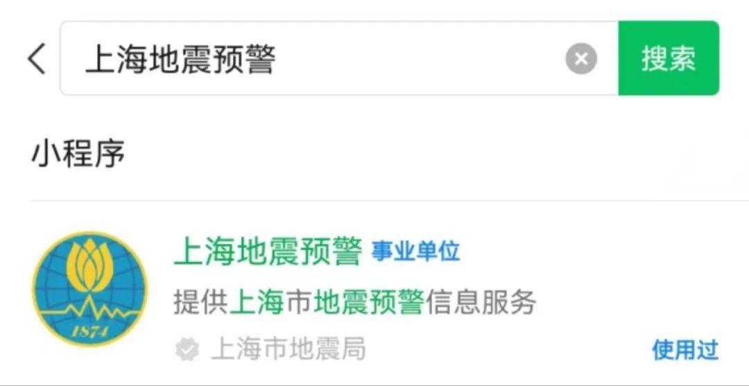 1、微信搜索“上海地震预警”,点击小程序。