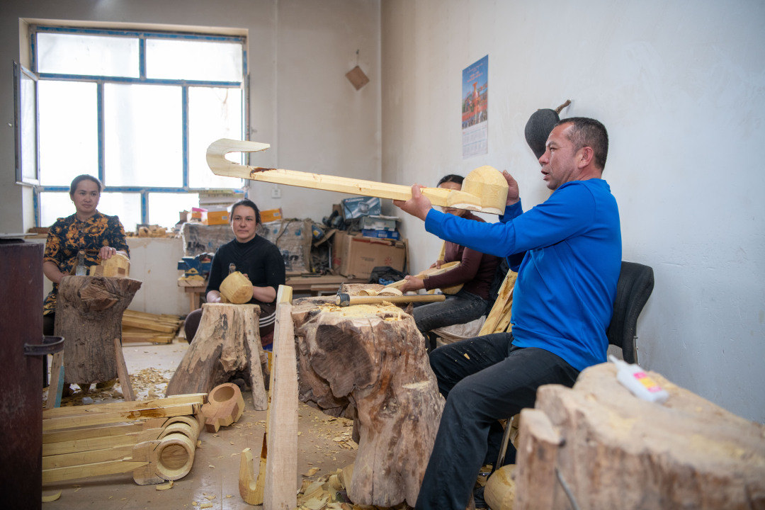 “我来到后为他出谋划策,他也有扩大生产、带动全家及村民致富的想法。在去年援疆项目致富带头人选拔中,吐尔洪江主动报名且符合条件,援疆资金安排25万元推动其项目建设。我们对他的庭院进行改造,将手工作坊升级为集展示、制作、培训为一体的农业手工业合作社。”罗亮表示。