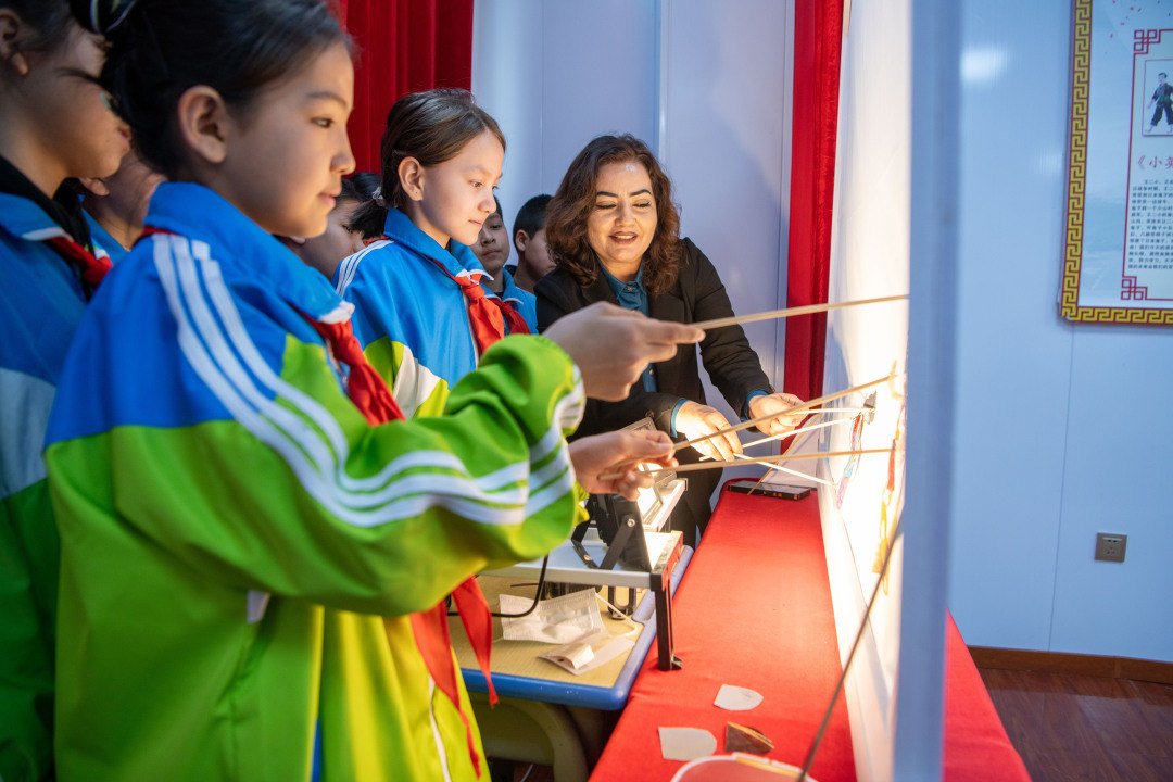“我们这个皮影工作室是来自广州的蒋丰硕老师建立起来的,我也成了她的第一任徒弟。”阿尔祖古丽表示,孩子们通过制作道具、表演皮影戏,不仅了解了更多中华优秀传统文化,也在潜移默化中增强了他们的爱国情感,铸牢中华民族共同体意识。接下来,她还将对皮影戏进一步创新升级,让更多学生能够参与,自己动手制作、自己当演员上台表演,促进他们的全面发展。