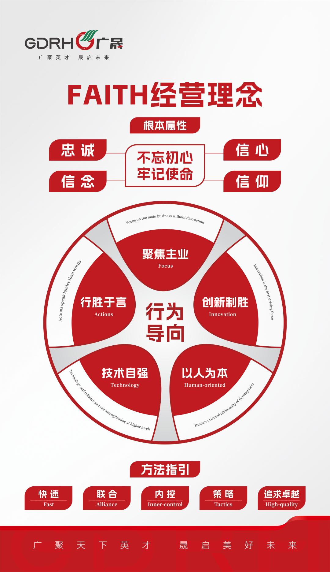 现场,吕永钟生动诠释了广晟控股集团的FAITH经营理念:所有企业的行为导向是——聚焦主业(Focus)、行胜于言(Actions)、创新制胜(Innovation)、技术自强(Technology)和以人为本(Human-oriented)。