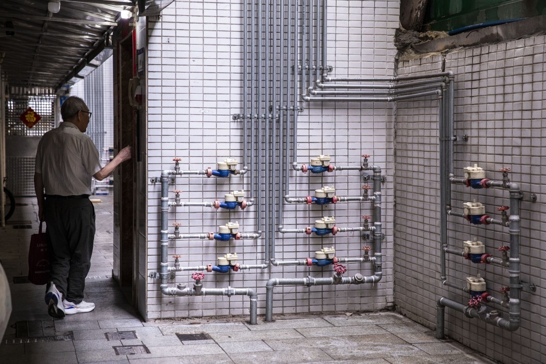 越秀区梅花路40-44号、50-54号小区楼龄已约30年,由于共用用水管道陈旧,无物业管理,过去在高峰供水期间经常出现高层水压不稳定的情况。何国华说:“过去水压不足,用水要依靠楼顶的天面水池,但天气热的时候水池就容易有异味、生红虫,水压不稳、水质差。我们后来在一楼装了加压泵,但泵房的噪声比较大,二楼的居民也有意见。”