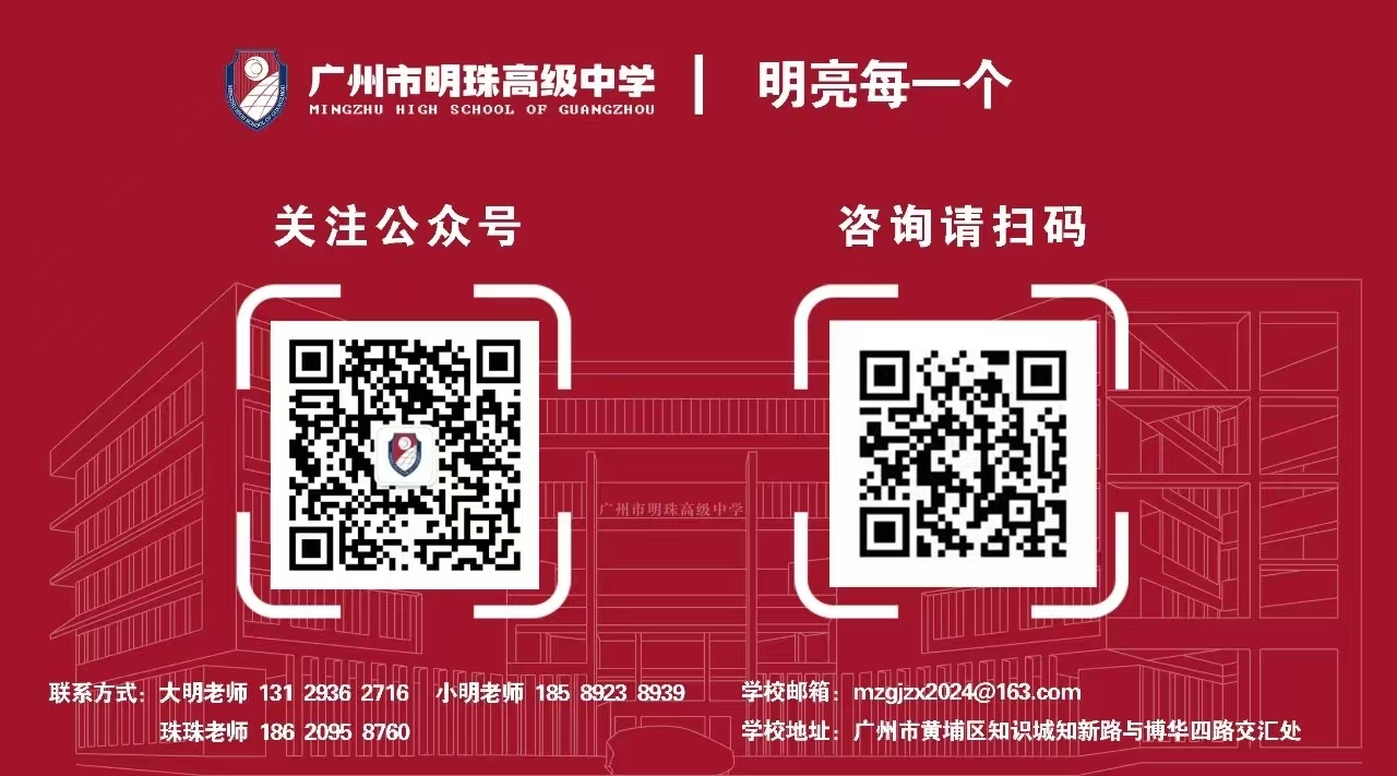 针对不同学生的需求,明珠高中设置珠峰班、珠玉班(西安电子科技大学广州研究院合作的西点人工智能班)、珠彩班三种班型。在多元升学方面,还提供双语班(第二外语,俄语和日语)、国际班(DSE、A-LEVEL、新加坡名校班等)、体艺班(传媒班、体育班、美术/书法班、音舞班)等多种选择。无论是文化课程学习,还是在科创、体育、艺术等领域展现才华,明珠高中都能为学生提供多元的教育路径和支持。