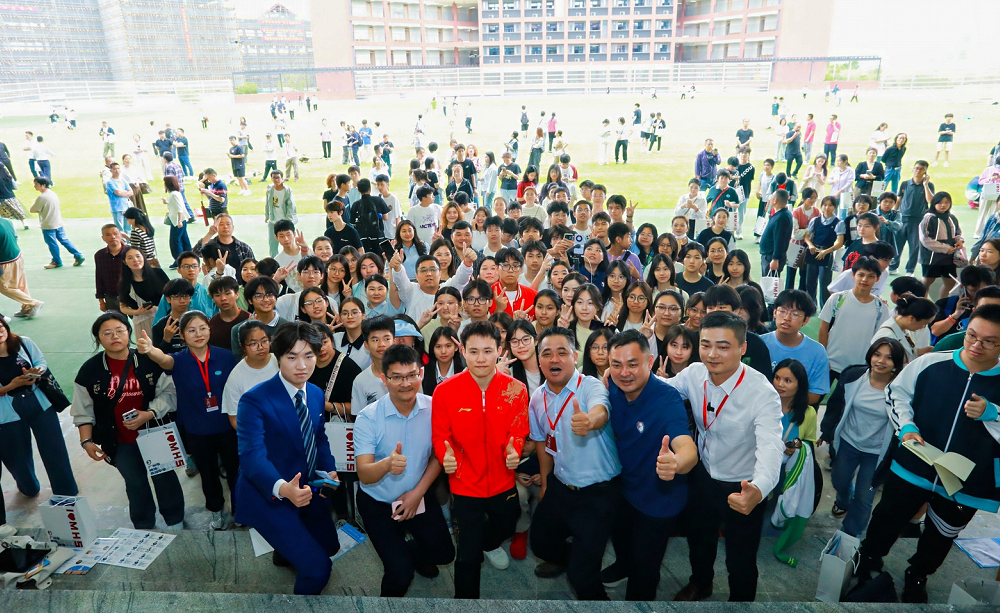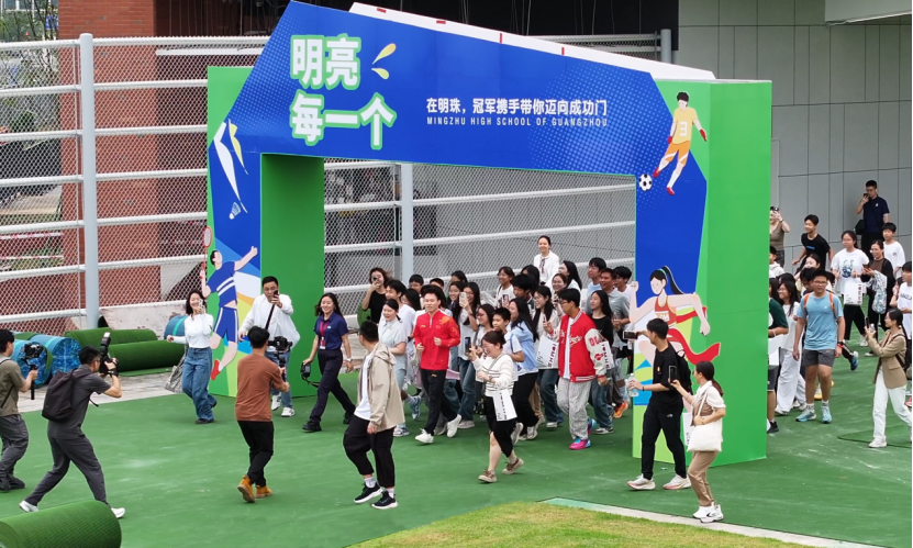 谢思埸分享了自己从汕头少年到世界冠军的成长故事,鼓励学生“用坚持跨越每一道坎”。在谢思埸的带领下,学生们沿跑道奔向“成功门”,寓意“以拼搏叩响未来之门”。一位参与家长感慨道:“冠军不仅是榜样,更传递了脚踏实地、永不言弃的精神!”