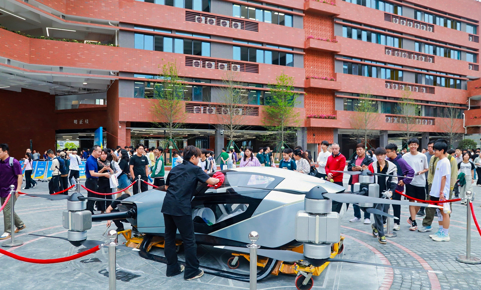 小鹏飞行器展示,吸引了大批家长考生驻足围观。