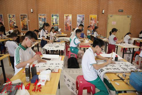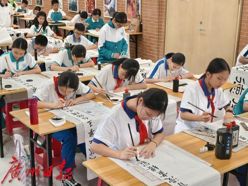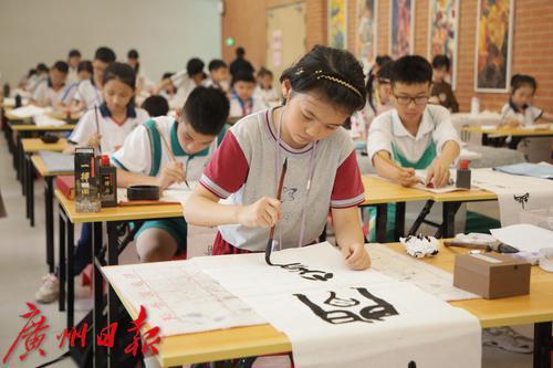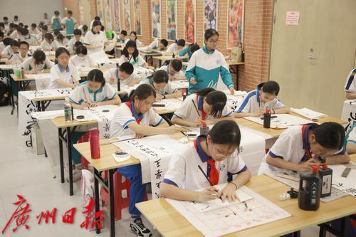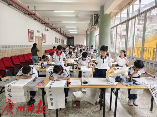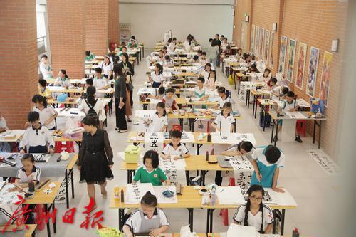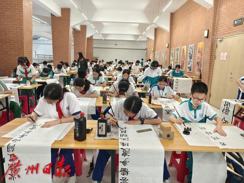 东校区的书法赛场则汇聚了290名参赛者,他们挥毫泼墨,用隶书、篆书、行书、楷书等各式字体书写歌颂新时代的诗词。小学高年级组一名选手专注书写原创诗句:“海珠湿地画中行,春风吹拂花千树”,引得评委驻足。评委陈玉萍认为,比赛彰显了孩子们的天性和才情,是一个很好的学习与成长平台。